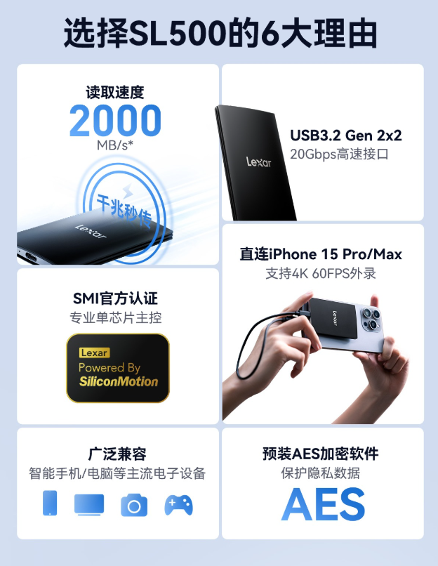 雷克沙1TB c 口3.2磁吸固态硬盘2T SL500 4T 512G适用苹果15 16